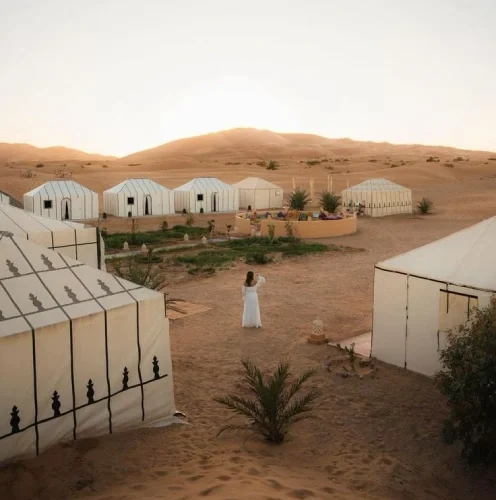 Wake up early to watch the sunrise over the dunes a breathtaking moment for every student desert tour. 4-Day Morocco Student Tour After breakfast and a camel ride back or 4×4 transfer, begin the journey toward Rissani, known for its authentic local market.Travel through the Draa Valley, full of lush palm groves and ancient kasbahs, before arriving in Ouarzazate. Visit the famous Atlas Film Studios (optional) or simply relax and enjoy the evening in this cinematic city.